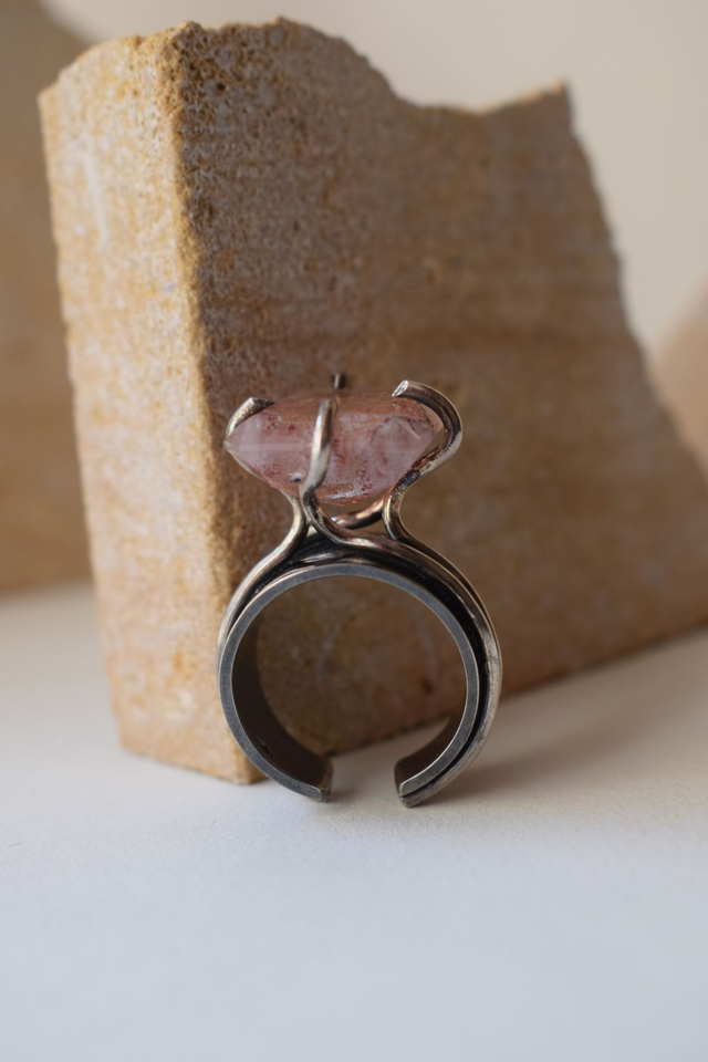 Bague élégante et minimaliste, mettant en lumière un sublime Quartz à inclusions d’Hématite.