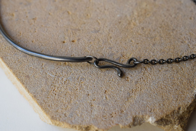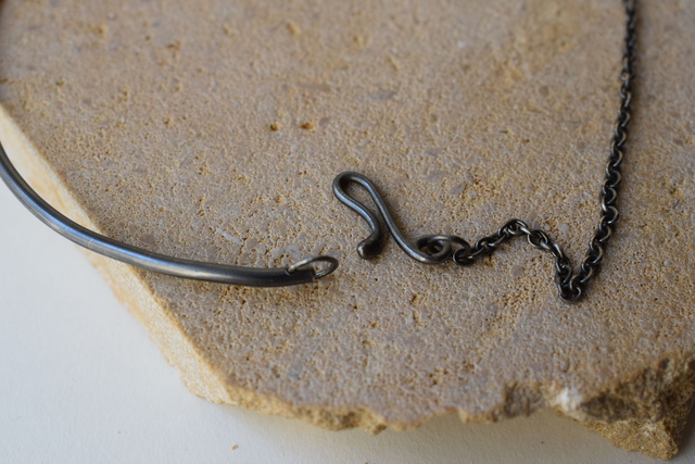 ⛓️ Collier en argent oxydé, composé d’une partie rigide en fil rond et d’une chaîne fluide.