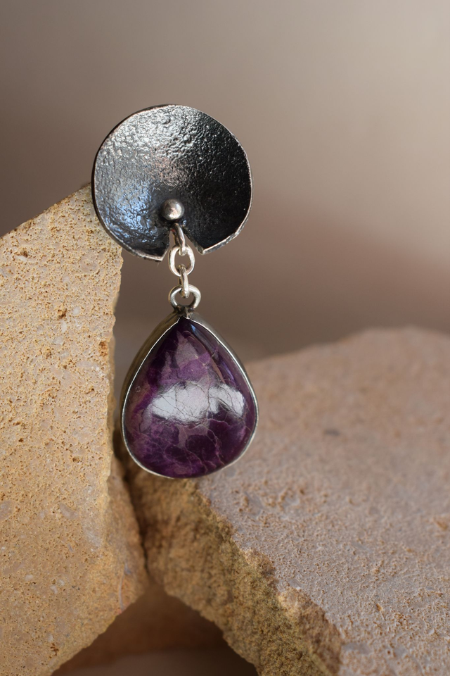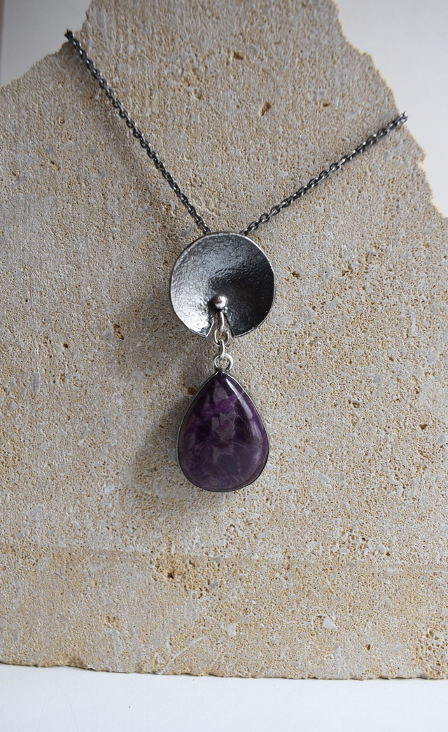 Pendentif fin et délicat, tout en nuances de violet, serti d’une belle Sugilite.