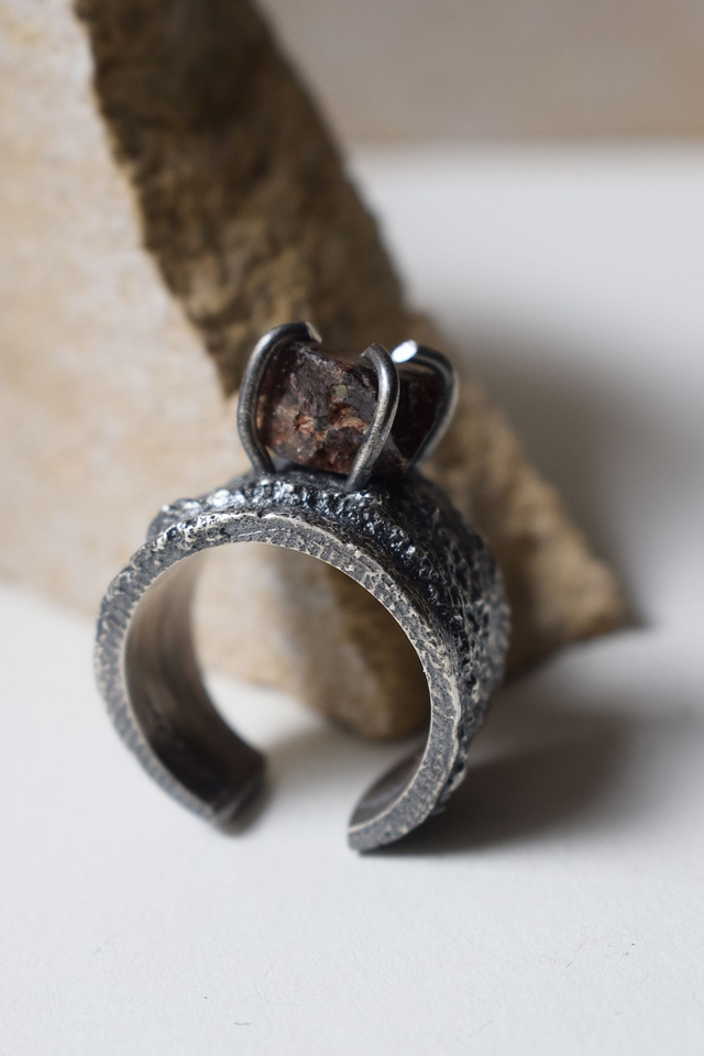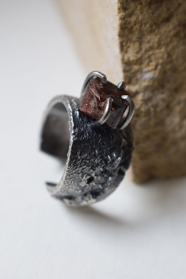 Bague irrégulière et brute, sertie d’un petit zircon brut. Une bague toute en simplicité, parfaite pour celles et ceux qui aiment se démarquer. Création mixte.