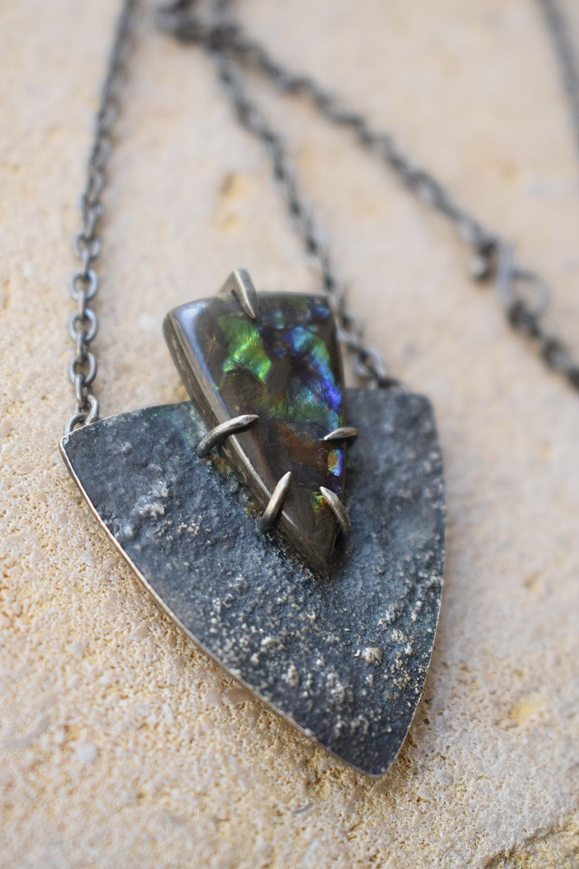 Collier tout en finesse, éclatant de couleurs grâce à une incroyable Ammolite.