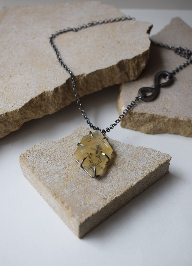 Collier discret et raffiné, serti d’un sublime Quartz à Dendrite de Madagascar.